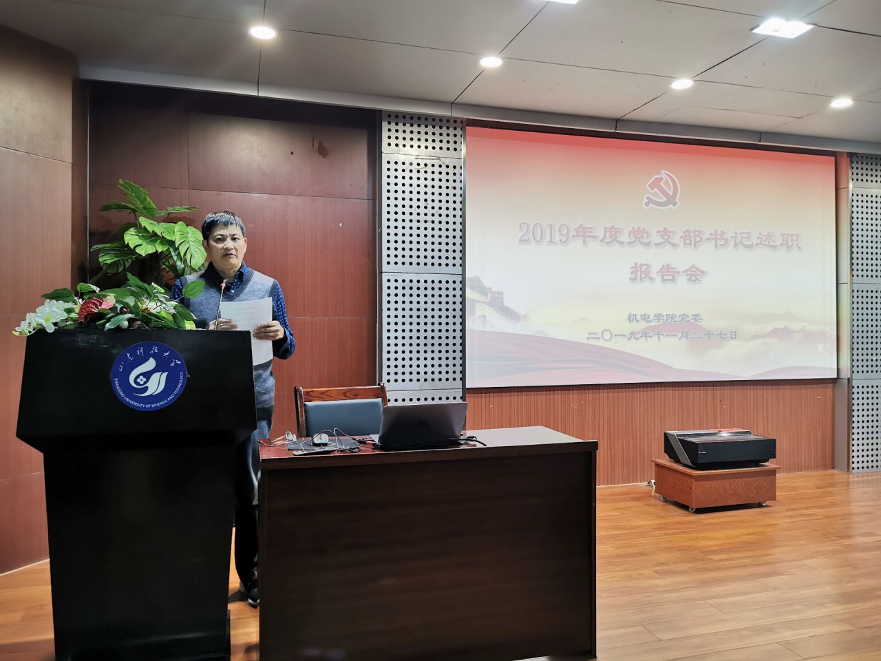 11月27日,机电学院党委组织开展2019年度党支部书记述职报告会,各党支部书记及全体教职工党员参加报告会。报告会由学院党委副书记苏超主持。