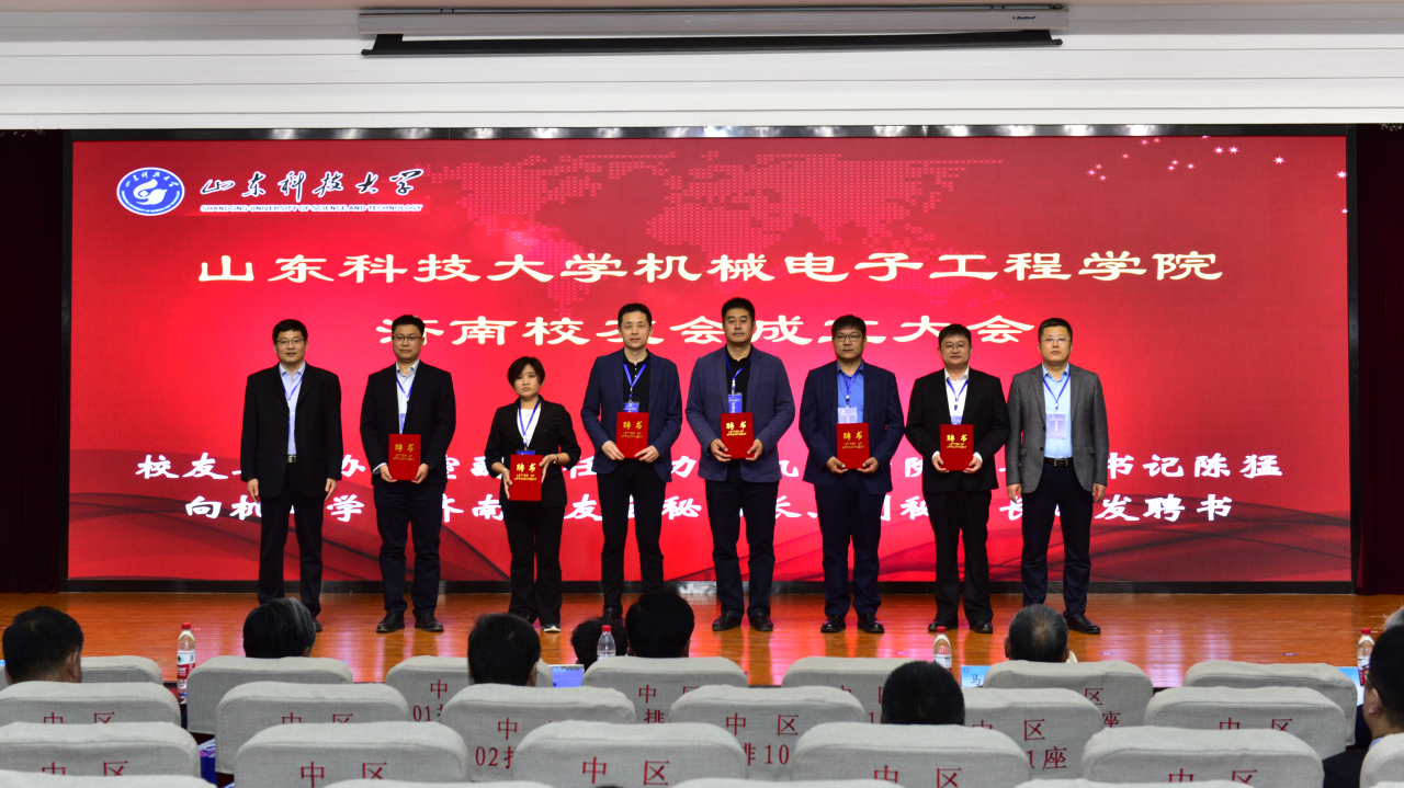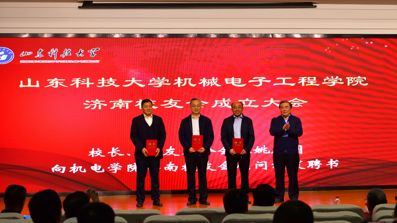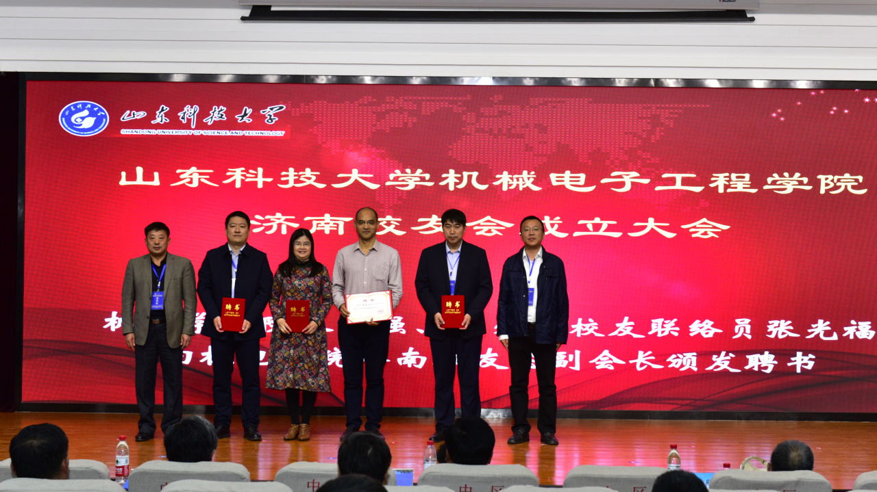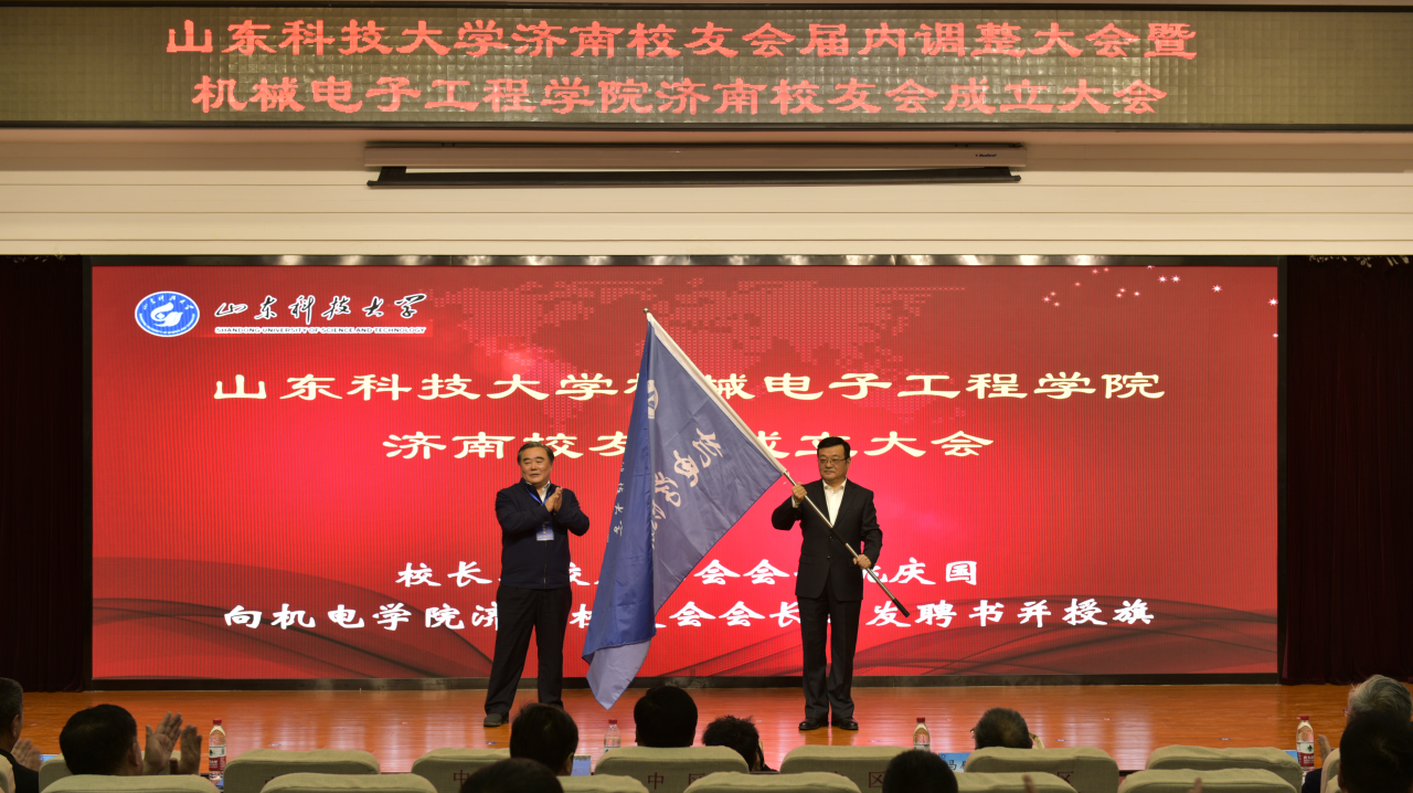 会上,筹备组副组长王庆奎向大会汇报了筹备情况。会议审议并通过了《Beat365亚洲版官网Beat365亚洲版官网济南校友会章程》和第一届理事会名单。校长、校友总会会长姚庆国向顾问颁发聘书并为新当选会长王谦颁发聘书并授旗;Beat365亚洲版官网院长张强、正处级校友联络员张光福向新当选的副会长颁发聘书;校友工作办公室副主任薛力、Beat365亚洲版官网党委副书记陈猛向新当选的秘书长、副秘书长颁发聘书。