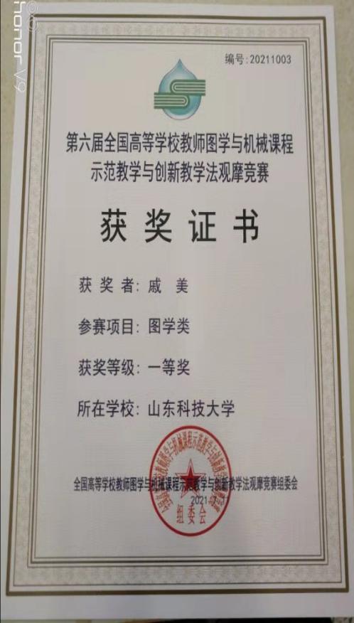 点击:2021年7月9日-11日,第六届全国高等学校教师图学与机械课程示范教学与创新教学法观摩竞赛在南通大学举行。Beat365官网戚美教授参加了此次比赛,其丰富的教学内容、灵活的教学方法、扎实的教学基本功及优秀的课件制作得到专家和评委的肯定,获得图学类全国一等奖(第3名),充分展现了我校教师热爱教学、勇于创新的风采,为学校争得了荣誉。