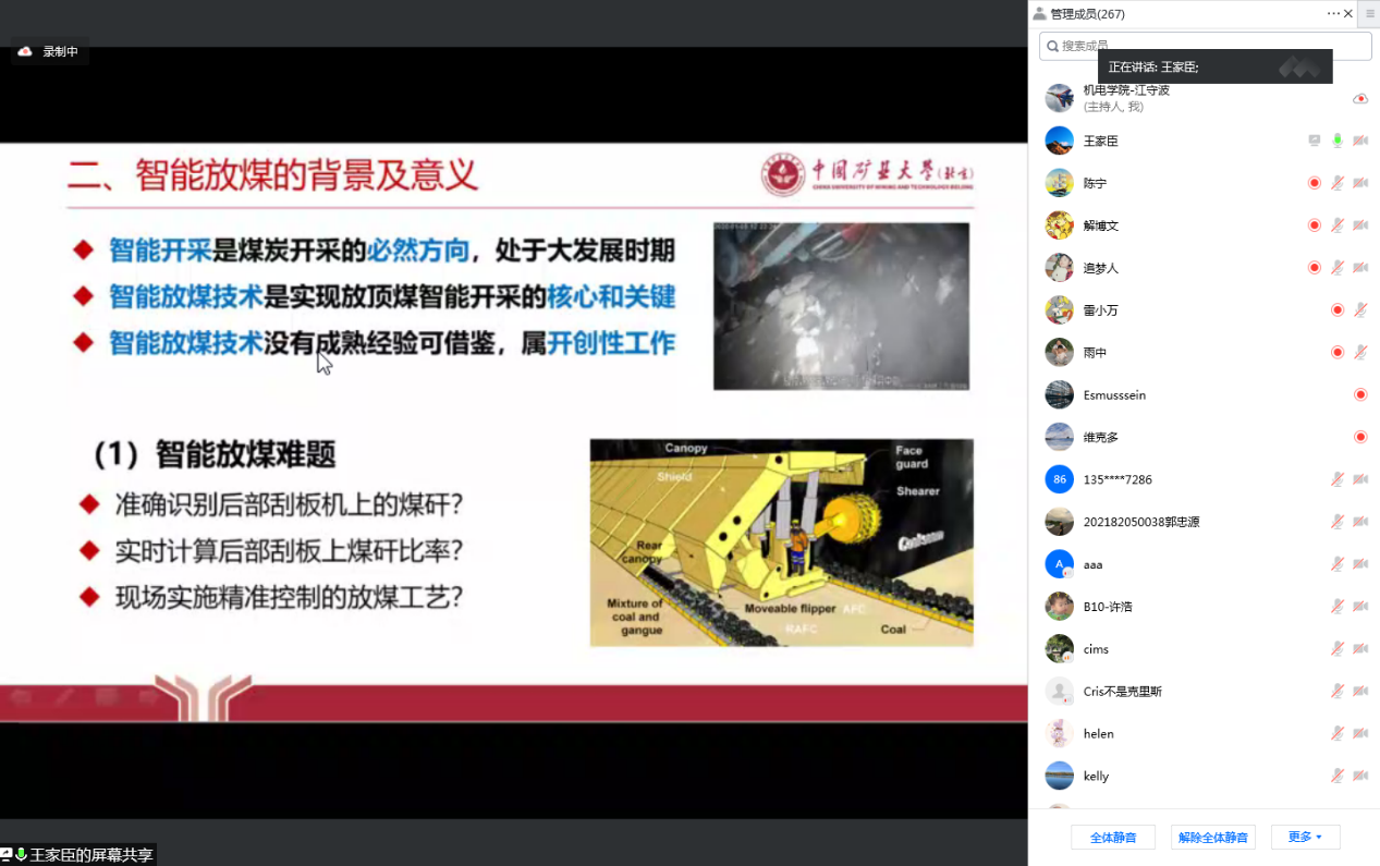 点击:2022年4月29日,中国矿业大学(北京)副校长王家臣应邀在线作了题为“图像识别智能放煤技术”的学术报告。会议由院长张强主持,机电学院、能源学院等270余名师生参加了报告会。