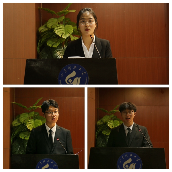 刘一鸣宣读致全体学生的倡议书,大会向全院学生会、学生干部及广大青年学生发出三点倡议:一是要坚定理想信念,发奋成长成才;二是要勇于开拓创新,锤炼高尚品德;三是要练就过硬本领,夯实圆梦基石;四是要矢志不渝奋斗,勇担使命责任。作为新时代青年,要牢记习近平总书记的教导,谨记“惟真求新”的科大校训,以饱满的热情投入到今后的学习、工作、生活中,为建设高水平应用型大学,为实现中华民族伟大复兴的中国梦,贡献青春磅礴力量!