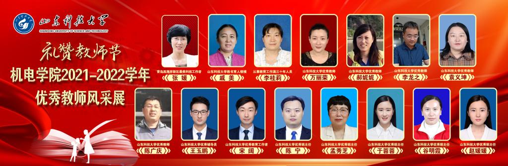在第38个教师节来临之际,为集中展现Beat365官网教职工爱党爱国、立德树人、自信自强的精神风貌,营造尊师重教的良好风尚,引领教师以昂扬向上的精神面貌和立德树人的扎实行动,迎接党的二十大胜利召开,学院举办“礼赞教师节”特别栏目,展示2021-2022年学生机电学院优秀教师的风采。