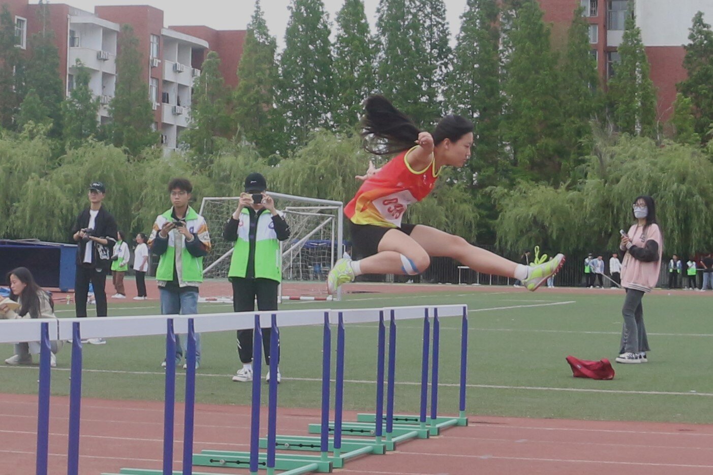 比拼激扬梦想,搏击磨砺锋芒。机电健儿们在赛场上勇于拼搏、挑战极限、勇创佳绩。他们秉持着公平竞争的体育精神,不惧挑战、奋勇当先,在赛场上磨砺意志,在竞争中锤炼体魄。投掷场上,标枪运动员全神贯注,向着梦想的距离发起一轮又一轮的挑战,标枪在空中轻盈的姿态,是机电健儿们强健力量和熟练技巧的结合;铅球运动员稳稳托举承载梦想的铅球,转身、挥臂,铅球划过天空的一道优美曲线是他们冲破云霄的自信豪迈;田径场上,一根根承载团结与奋进的接力棒在机电人的手中传递;跳远运动员离弦箭似的助跑、蚂蚱似的起跳、空中的走步表演、完美的弧线引起阵阵惊叹;跨栏运动员灵巧速跑,纵身飞跃,势如破竹,层层障碍难以阻挡他们勇往直前的意志……赛场之外,机电观众也激情澎湃,他们欢呼喝彩、呐喊助威,为健儿们增添动力与信心。经过两天的全力比拼,机电健儿喜获佳绩:陈子晔荣获乙组女子铅球冠军;李安月荣获甲组女子铅球冠军;万明萱荣获甲组女子铁饼冠军;王嘉豪荣获乙组男子铁饼冠军;邱传伟荣获甲组男子标枪冠军;张凯媛荣获乙组女子100米栏和乙组女子800米冠军;田鑫嘉荣获甲组女子100米栏冠军;樊香荣获甲组女子800米冠军;董昌宇荣获乙组男子400米冠军;孙鹏杰荣获乙组男子三级跳冠军......