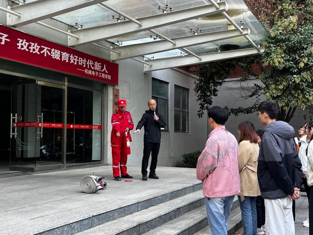 为响应“全国119消防宣传日”的号召,增强师生消防安全意识,提高突发事件应急处置能力,11月8日下午,机电学院于学院楼东侧开展消防演练活动。此次活动邀请安全管理处安全教育科科长陈浩作为主讲嘉宾,机电学院党委副书记兼副院长刘梅月出席活动学院教师代表及学生代表参与活动