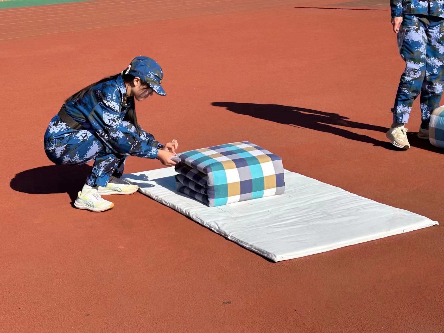 据悉,本次比赛采取分组计时方式,包含识图用图、战场医疗救护、综合体能、叠军被、手榴弹投掷等项目,综合考查学生们对军事技能的掌握、体能素质以及团队协作能力。机电学子奋勇争先,赛前多次训练的成果在赛场上发挥的淋漓尽致,每一项比武中都展现了昂扬的精神风貌。综合体能项目中,董昌宇无惧寒风,一马当先,凭借灵活巧妙地走位和强健的身体素质拔得头筹;张凯媛向来严谨认真的态度在叠军被项目中大放异彩,在她娴熟的操作下,一个线条平直、宛若豆腐块一般的被子逐渐成型,为机电学院再添单项第一。