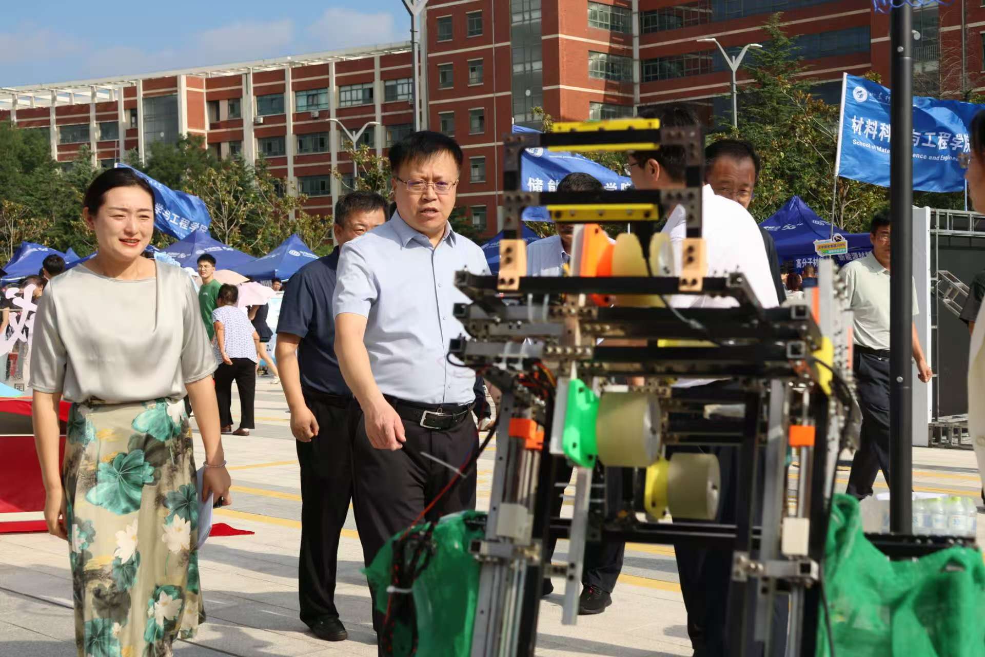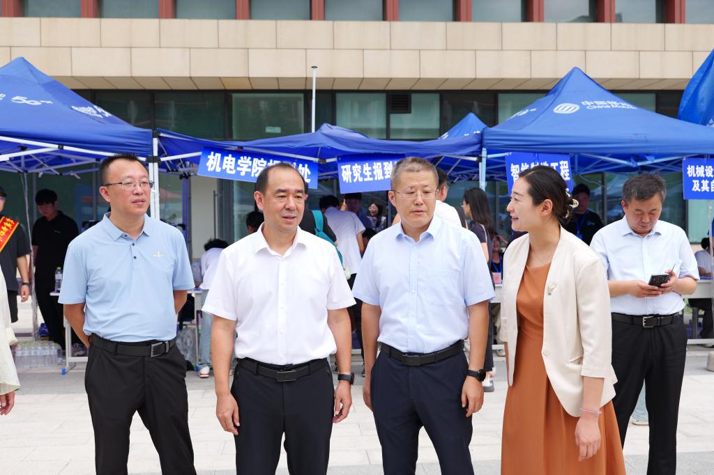 在迎新期间,校党委书记王君松、校长曾庆田以及相关部门领导来到学院迎新点,学院领导汇报迎新工作进展情况,并就学院“‘五’力赋能仪式”“科技展示处”等特色迎新项目进行介绍。学校领导高度肯定了机电学院近年来在学生科创方面取得的成就,并对学院新生寄予了更高的期待。