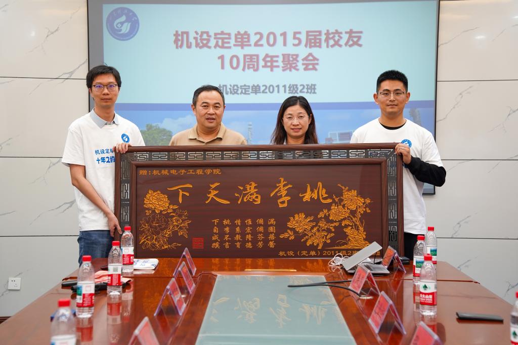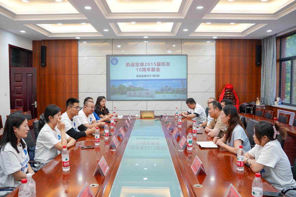 9月20日,机电学院209会议室暖意融融,机械设计制造及自动化(定单)2011-2班校友齐聚母校,举办毕业十周年返校聚会座谈会。机电学院副院长张鑫、学工办主任(团委书记)樊玉华与校友们围坐一堂,共忆校园青葱岁月,共话职场成长感悟,共叙母校发展情谊,为这场跨越十年的“青春之约”写下温暖注脚。
