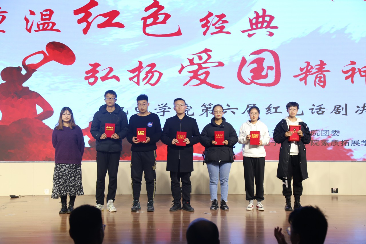 点击:为了加深同学们对红色文化的理解,提高对红色经典的认识,引导同学们传承优秀红色精神,11月28日下午,机电学院在大学生活动中心报告厅举办第六届“重温红色经典,弘扬爱国精神”红色话剧大赛。机电学院团委老师王玉鹏、杨治宽、曲岩、孟凡宝、罗雨婷,学生代表贾炳一、张善翔出席本次大赛并担任评委。