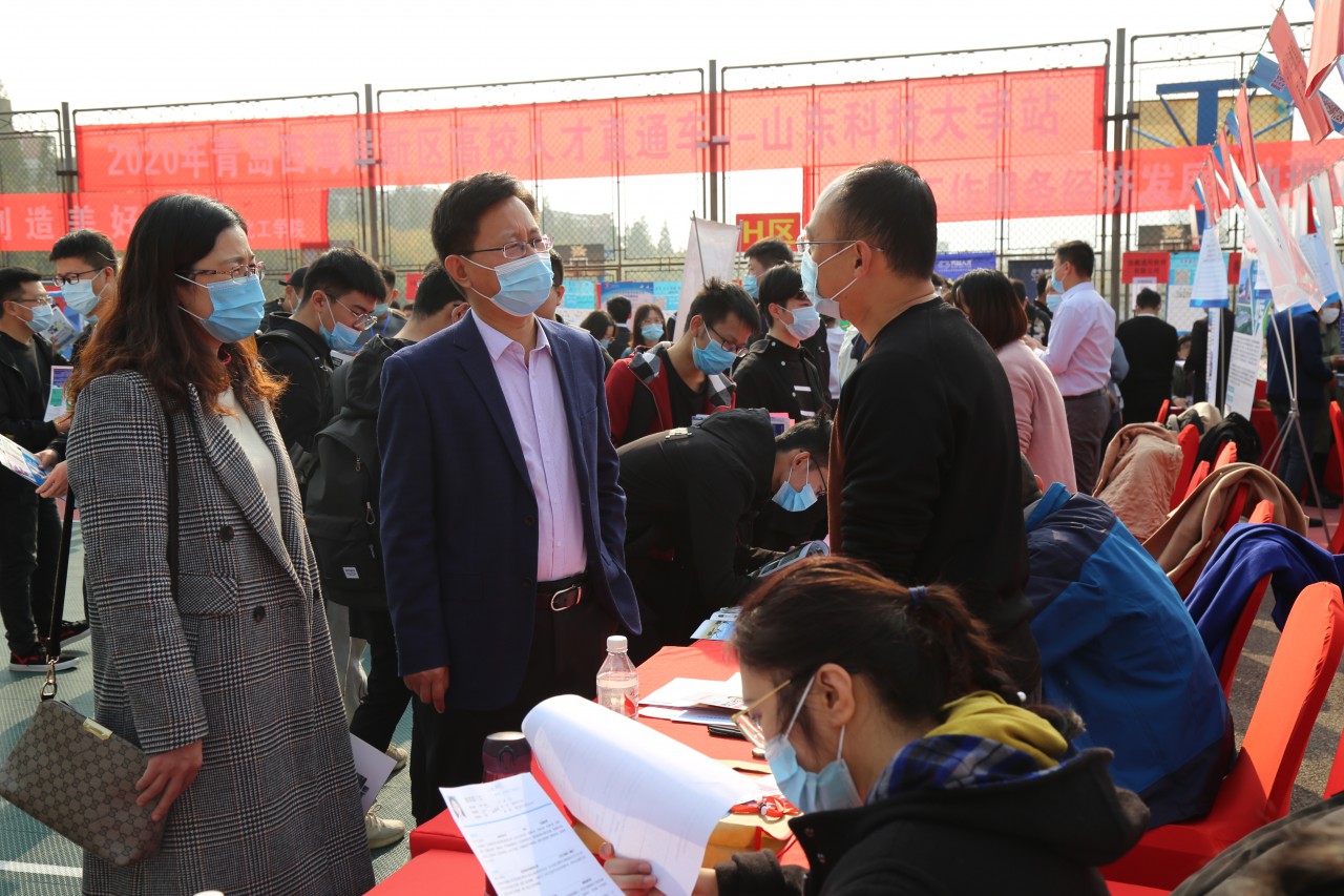 招聘会上,韩宝坤与豪迈集团股份有限公司、青岛荏原环境设备有限公司、嘉里粮油(青岛)有限公司、青岛海容冷链股份有限公司等企业进行了深入交流,了解各个企业的招聘情况,希望进一步开展校企合作。韩宝坤充分了解毕业生就业需求,鼓励毕业生要积极面对严峻的就业形势,主动应聘,合理选择就业岗位。