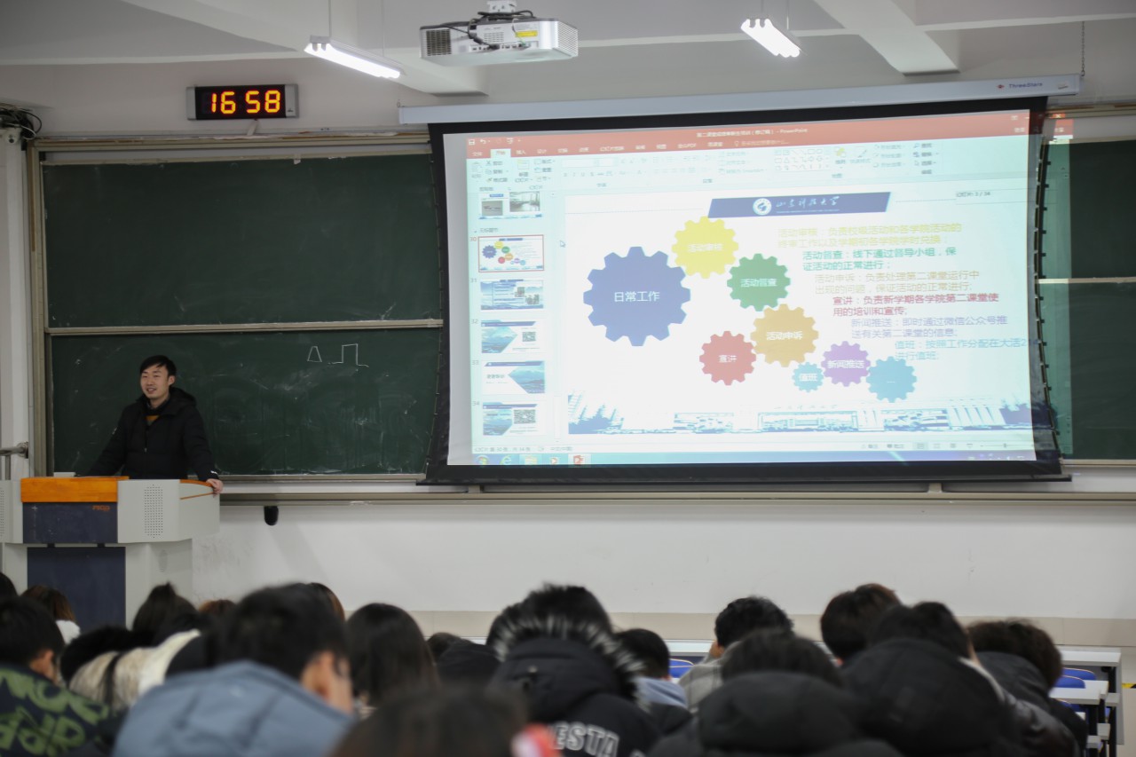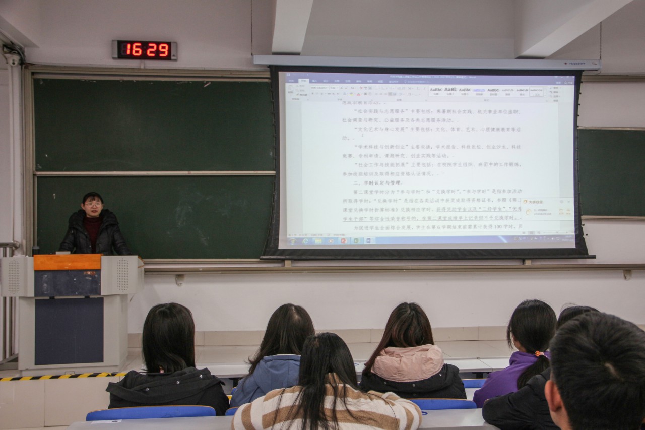 点击:12月17日下午,机电学院在J14-421、423举办青年马克思主义者培训班第一讲,机电学院辅导员祝月盈、宋阔担任主讲人,讲解《第二课堂成绩单实务》,2020级全体学生参加培训。 培训会上,祝月盈、宋阔围绕第二课堂活动的意义和作用,第二课堂成绩单的课程设置、学时认定与管理、如何发起、学院第二课堂工作站相关工作内容,PU口袋校园的使用方法向同学们介绍第二课堂相关内容,重点讲解了各类课程的学时数要求、第二学期兑换学时应注意的方面。老师们表示,第二课堂是发展特长、塑造个性的重要方式,要注重在第二课堂活动中锻炼能力、提高素质,充分发挥第一课堂和第二课堂的补充配合作用。 本次培训使2020级学生更加明确了第二课堂的意义与作用,加深了同学们对“PU口袋校园”的了解,进一步推动学院第二课堂制度的建设与工作落实。(通讯员:祝月盈 摄影:韩开睿、吴昊天)