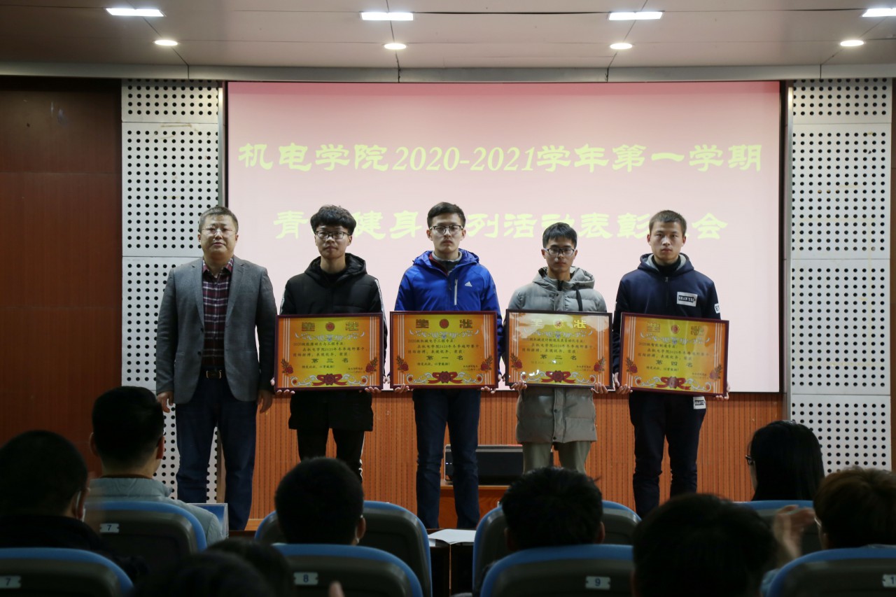 点击:为了表彰和鼓励在青年健身节系列活动中表现优异的队伍,提高同学们对体育活动的热情,12月22日下午,机电学院在学院楼报告厅召开青年健身节表彰大会。机电学院党委副书记、副院长陈猛,团委书记樊玉华,全体团委老师参加,杨治宽担任主持人。