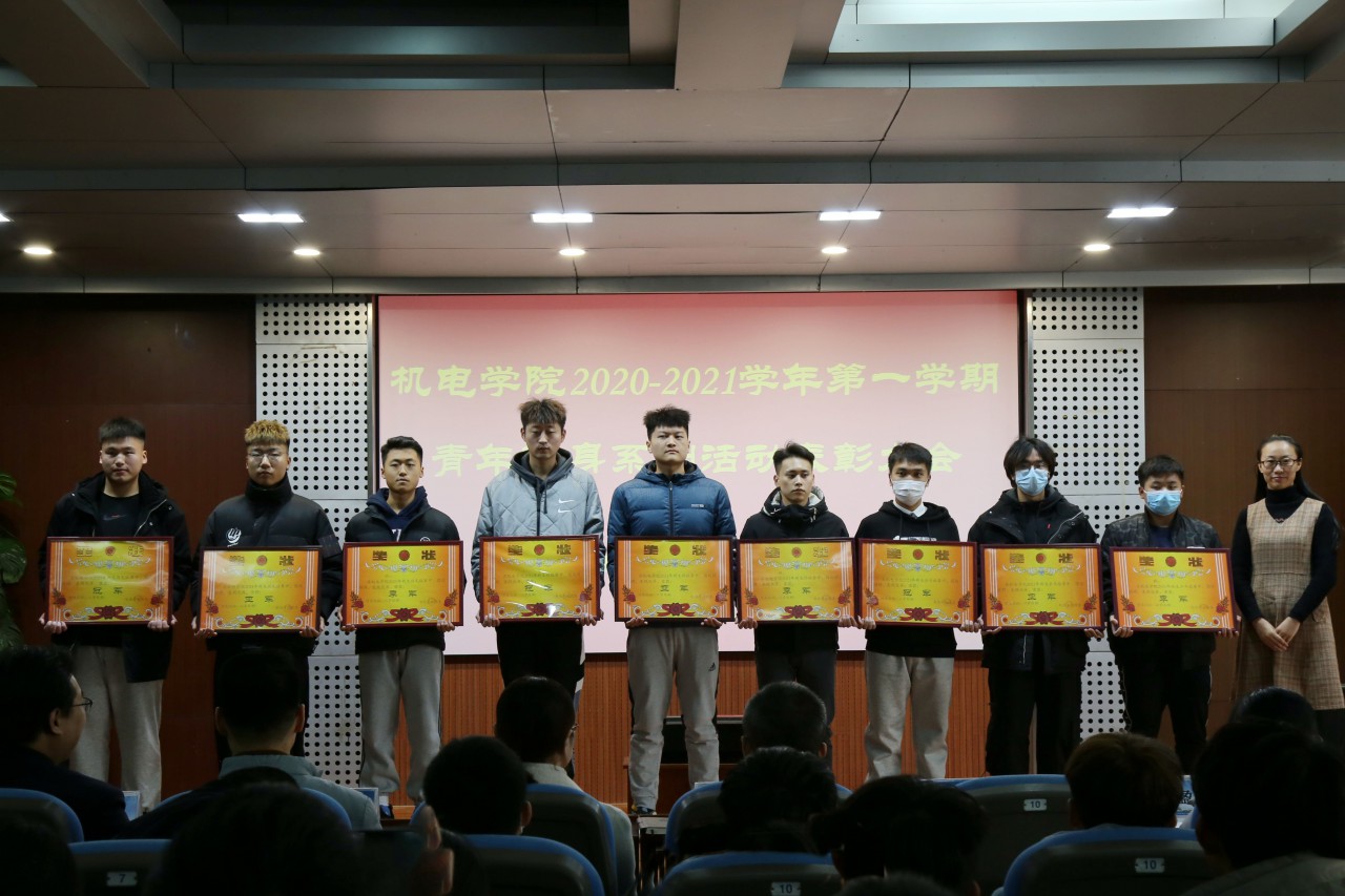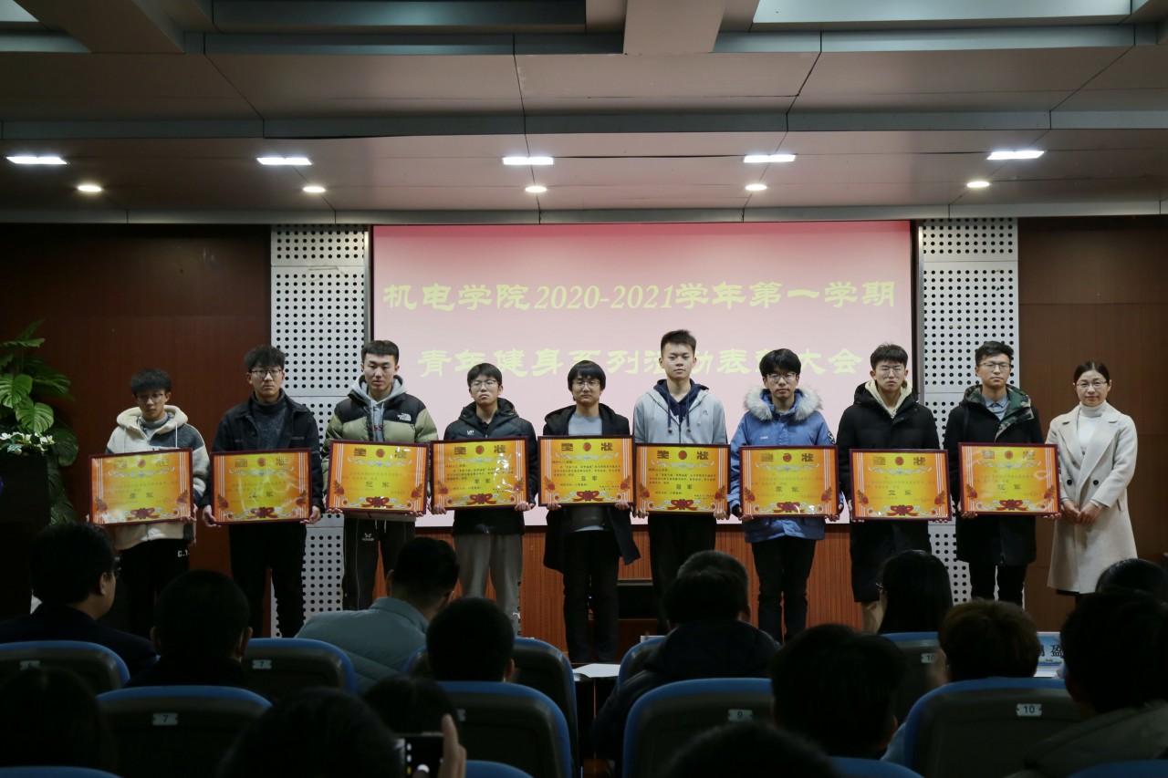樊玉华宣读《关于表彰Beat365亚洲版官网机电学院2020年“青春飞扬,逐梦扬威”青年健身节系列活动优秀队伍的决定》,表彰了在新生篮球赛、新生足球赛、冬季越野赛等六个体育赛事中获奖的40个优秀队伍,陈猛、樊玉华、崔静怡分别为获奖队伍颁发荣誉奖状。