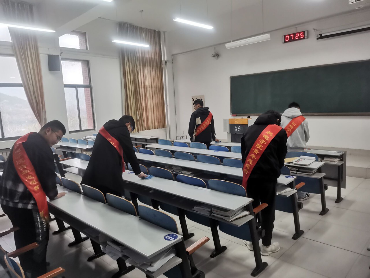 来到教室清理课桌的同学们也不含糊,在尽量保持安静的情况下,用手中的一纸抹布,抹散了课桌上的片片污秽,“清洁校园保护了学校的风景,也守护了同学们欣赏美的眼睛,希望同学们都能从自身做起,树立起保护环境的意识,守护我们共同的家园。”能源与动力工程专业20-1班王奕原如是说。