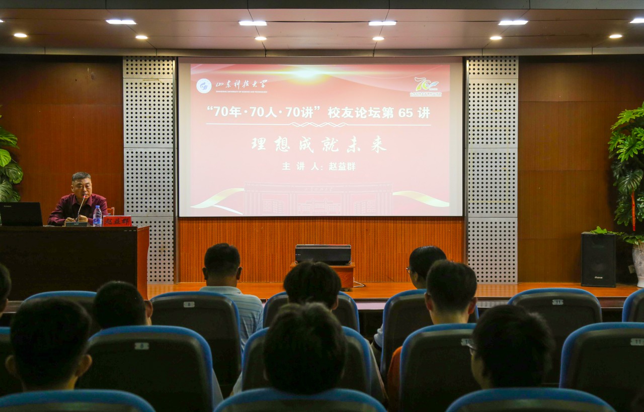 9月16日下午,山东科技大“70年 70人 70讲”校友论坛65讲在机电学院报告厅举办矿山机械专业87级校友、朗威(青岛)控股集团有限公司董事长赵益群应邀为师生题为理想成就未来讲座讲座由机电学院党委书记韩宝坤主持,团委书记樊玉华、团委老师祝月盈及各年级学生参加