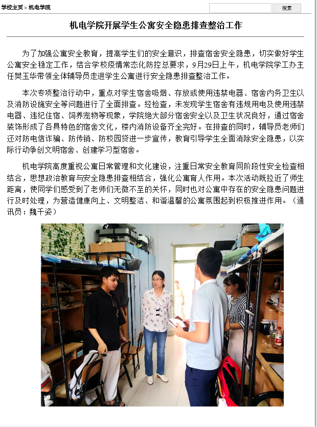 机电学院开展学生公寓安全隐患排查整治工作