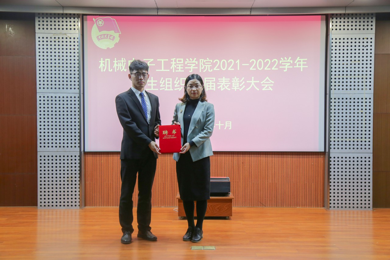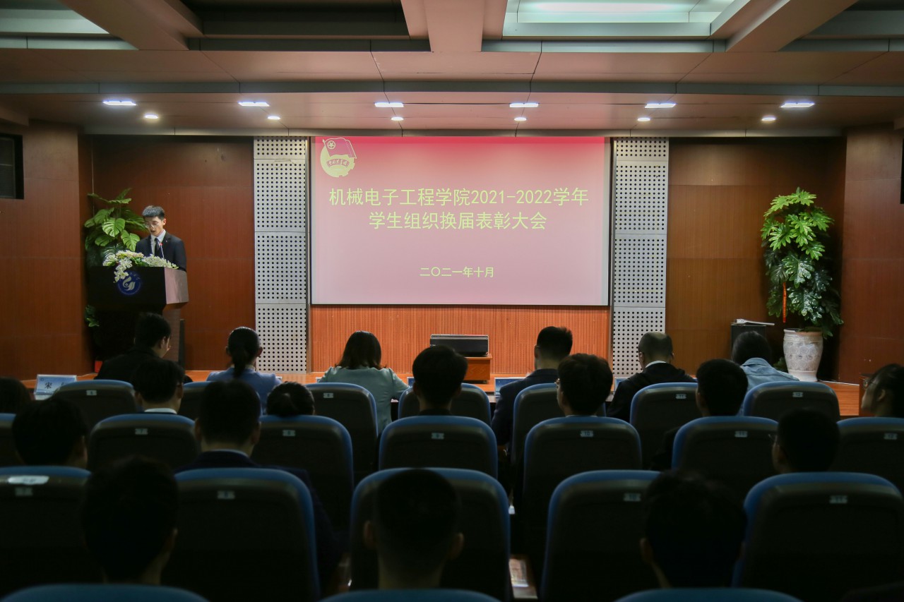 点击:为进一步提高学生组织的自我服务意识,保障学生工作的连续性,10月29日下午,机电学院在学院报告厅召开2021-2022学年机电学院学生组织换届表彰大会,机电学院党委副书记、副院长陈猛,团委书记樊玉华,学院全体辅导员及部分校、院学生会主席出席会议,团委老师宋阔主持会议。