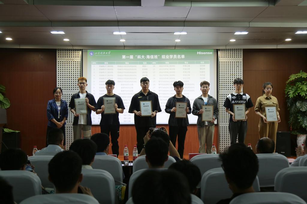 “嵙大·海信班”第一届结业典礼上,大家共同观看了第一届班级学员的培养历程视频,学员们克服疫情带来的不利影响,开展了丰富多彩的班级活动,提升了同学们的创新意识和实践动手能力,取得了较好的成绩成果。