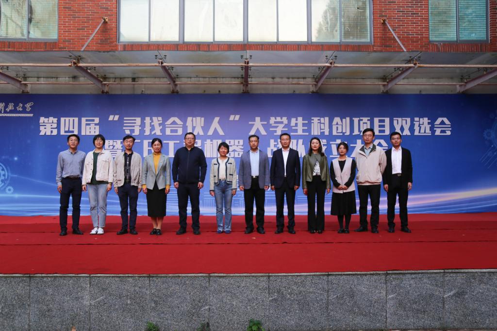 杨彬、靳凯先后宣读《机电学院“英科医疗杯”第四届“寻找合伙人”大学生科创项目双选会通知》《机电学院CR工程机器人战队成立公告》。刘松为CR工程机器人战队指导教师颁发聘书。