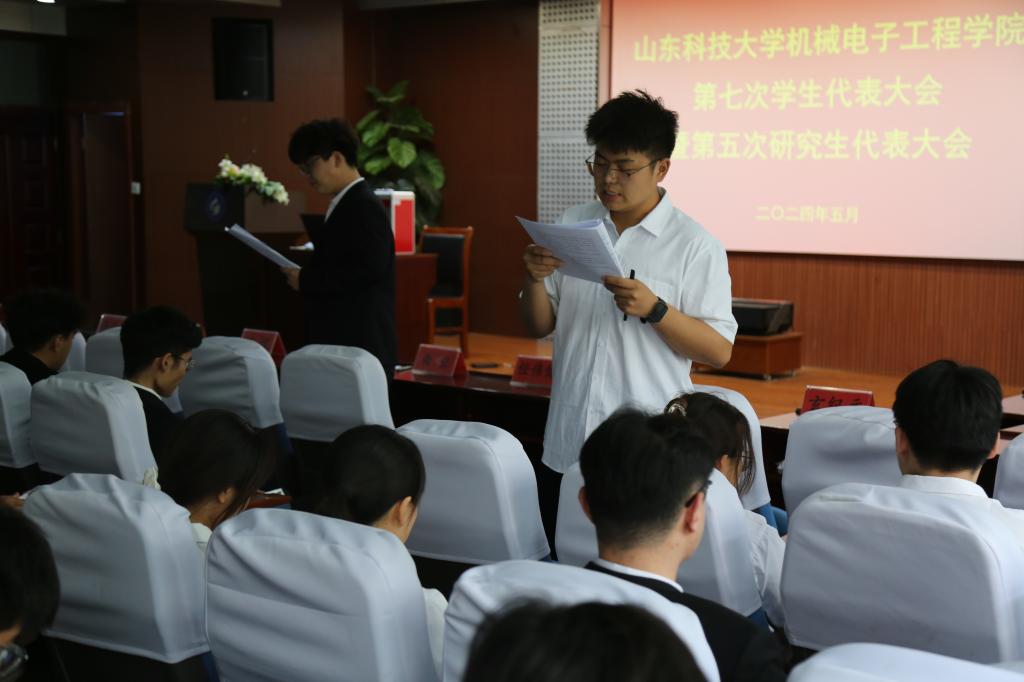 会议听取了郑恒磊作Beat365亚洲版官网学生会工作报告,听取了郭雨涛宣读《关于<Beat365亚洲版官网机电学院学生会章程(修正案)>的说明》,听取了刘丁源作《学代会提案工作报告》。