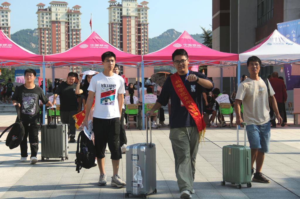 “这是咱们的图书馆,这是咱们的一站式社区……”“没事,我帮你拿着行李”“以后还有什么疑惑可以联系我”,从引导新生报到、搬运行李,到解答疑问、指引路线,迎新志愿者忙碌的身影穿梭在校园的每个角落,他们面带微笑,热情地为新生及家长提供指引和帮助,暖心为新生们建立起“机电归属感”。