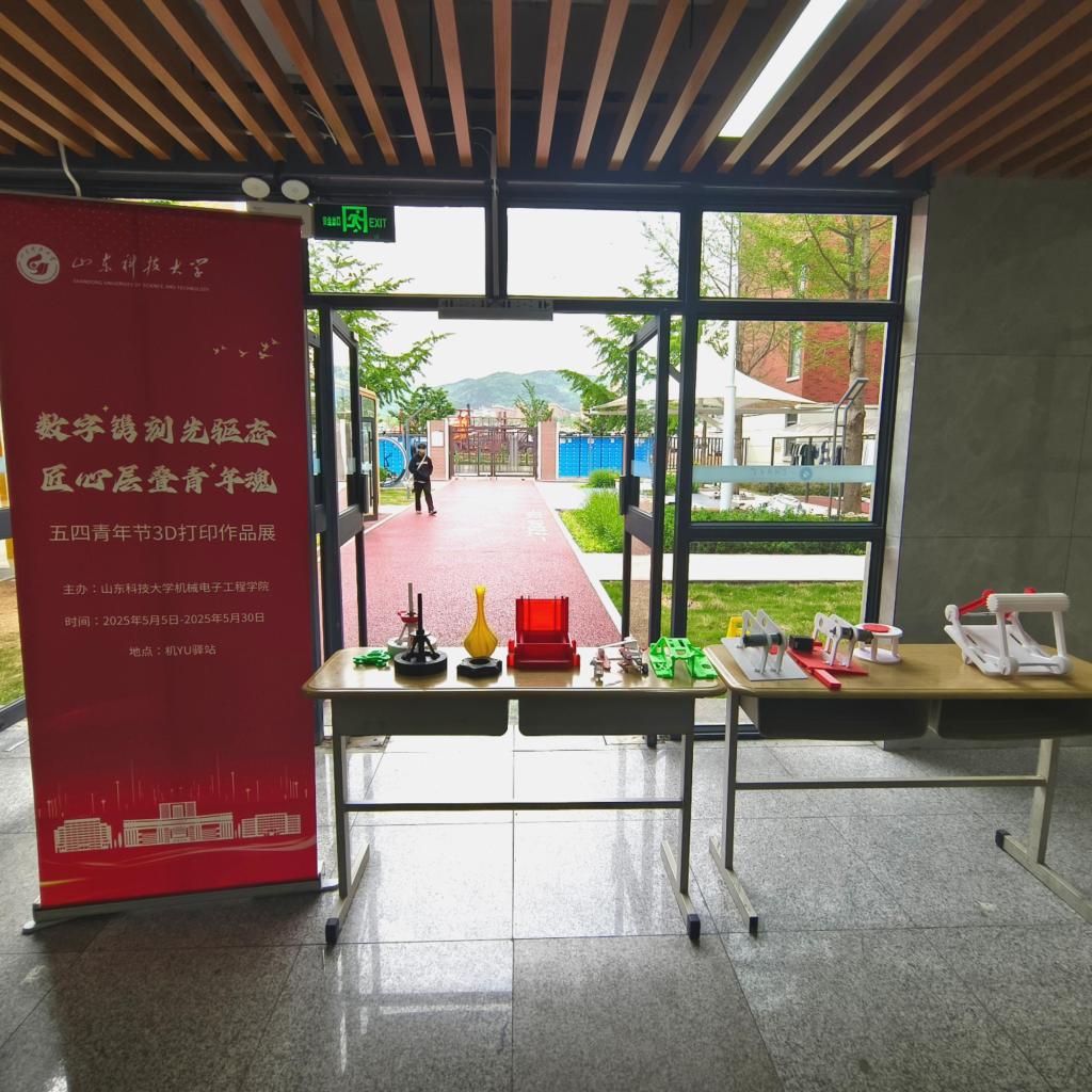 同学们发挥专业特长,利用3D打印技术,制造出红色文化主题模型,各种工业零部件和产品原型。展览现场,一件件充满巧思的3D打印作品吸引观众驻足。这些展品不仅展示了 3D 打印技术在机械工业生产中的高效性和灵活性,也是通过专业技能为五四青年节献礼。