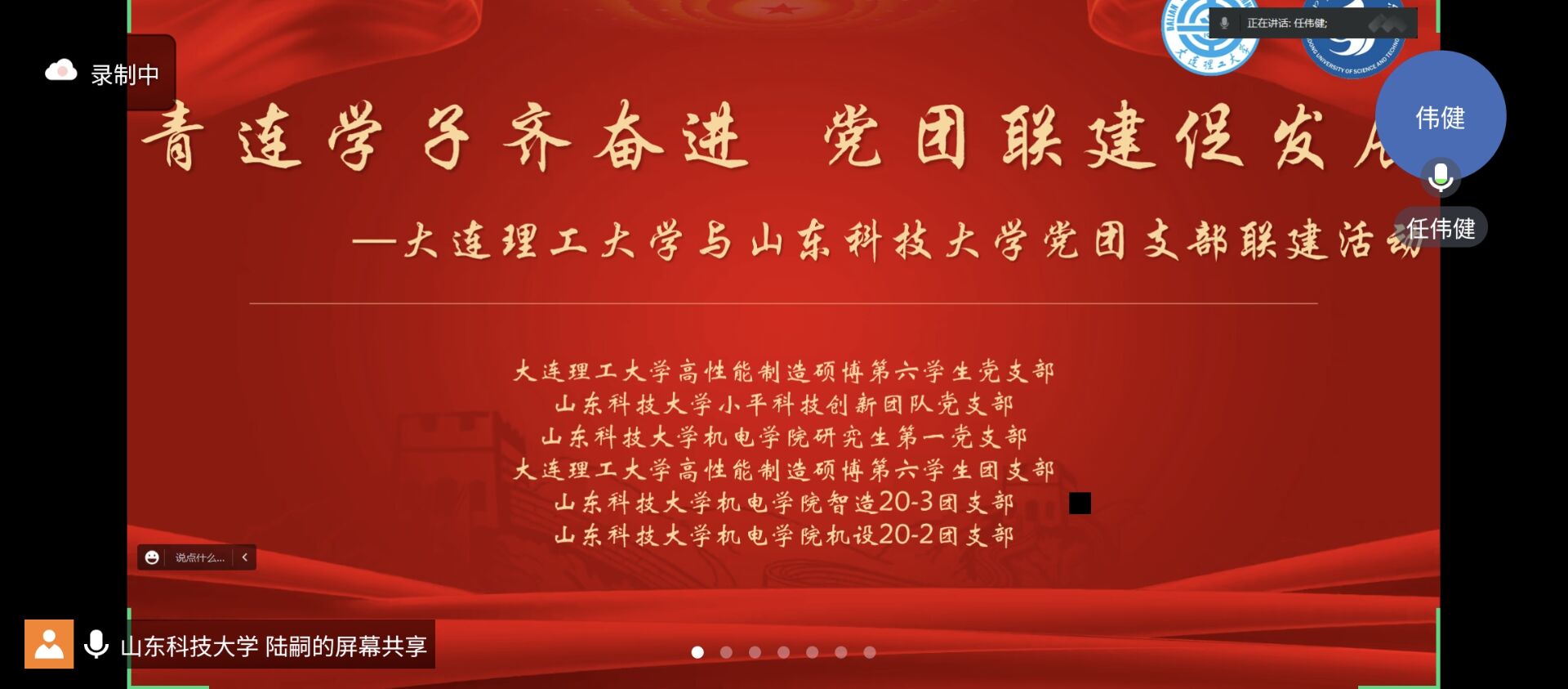 点击:为贯彻落实党的二十大精神,构建异地高校党团联建新格局,搭建研究生学术交流新平台,5月14日,机电学院小平科技创新团队党支部、研究生第一党支部、智造20-3团支部、机设20-2团支部与大连理工大学高性能制造硕博第六学生党支部、团支部在线上共同开展“青连学子齐奋进 党团联建促发展”第三期活动。本次会议由Beat365亚洲版官网机电学院研究生第一党支部书记陆嗣主持,会议内容为科研经验共享。