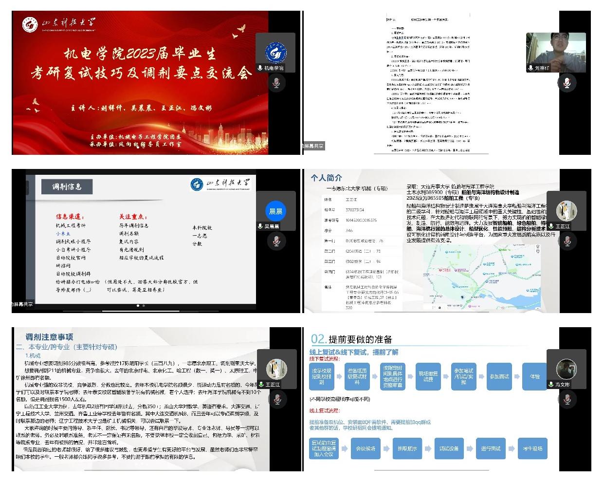 “长风破浪会有时,直挂云帆济沧海”,交流会在同学们的掌声中圆满落下帷幕。本次考研复试技巧及调剂要点交流会的成功举办,有助于减少学生在复试准备阶段的迷茫与困惑,同时也有助于同学们坚定信心、调整心态,科学合理地准备复试与调剂。机电学院将持续推进毕业生考研、就业帮扶工作,助力毕业生成长成才。(通讯员:郭春阳、王嘉豪 摄影:郭雨涛、王嘉豪)